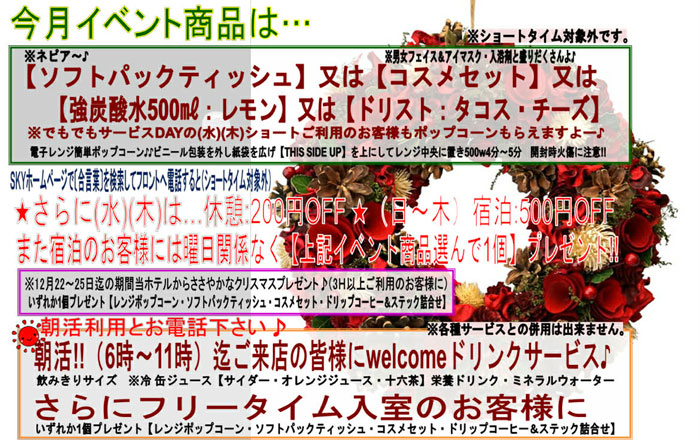 宿泊:\7,000(平日・日・祝)/\8,500(土・祝前日)